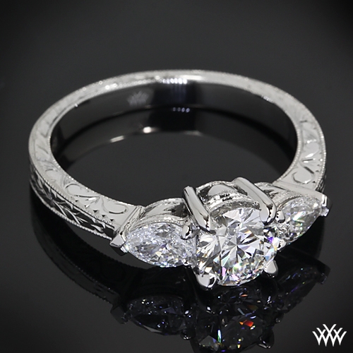 Platinum vatche 310 round and pear three stone engagement ring for 0.50ct center diamond (0.25ctw pear side diamonds included).